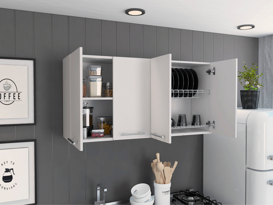 Kitchen Cabinet Durham, Four Doors, White Finish White Particle Board
