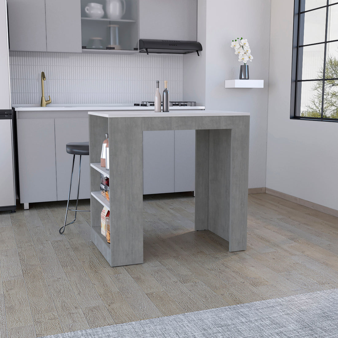Name: Portree Kitchen Island with 3-Side Shelves Characteristics: The Portree Kitchen Island is a versatile...