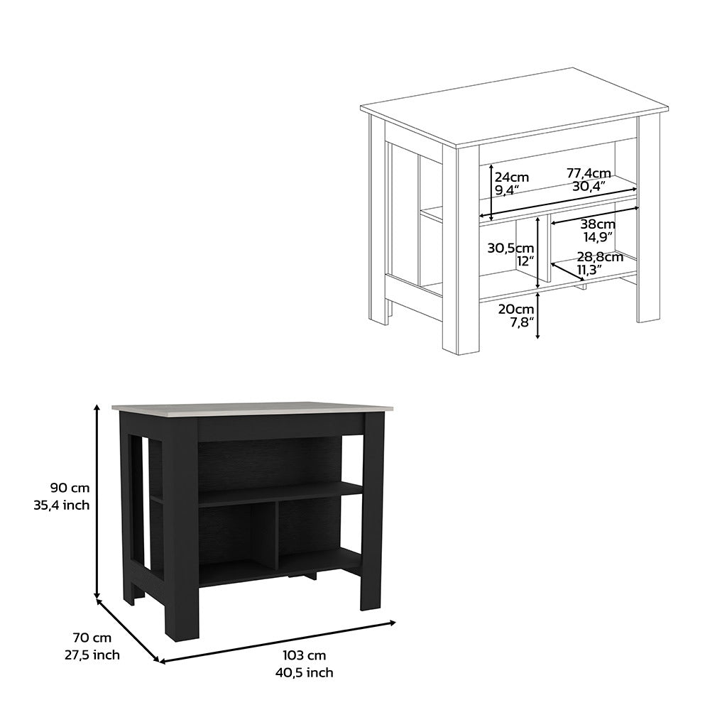 Name: Kitchen Island Doyle, Three Side Shelves, Black / Ibiza Marble Color Finish Characteristics: The...