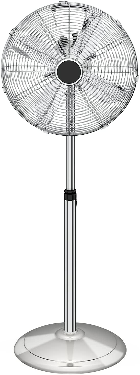 16 Inch Stand Fan, Adjustable Heights, Horizontal Ocillation 75 , 3 Settings Speeds, Low Noise, Quality Made Durable Fan, High Velocity, Heavy Duty Metal For Industrial, Commercial, Residential