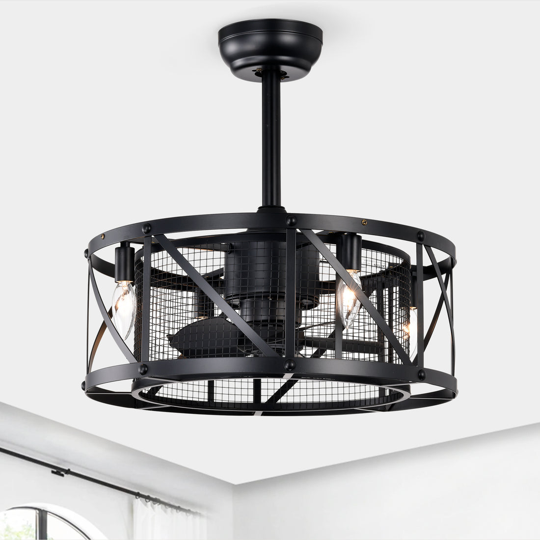 Name: 18inch Caged Ceiling Fan with Lights Remote Control for App (Note:No on bulbs) Characteristics:...