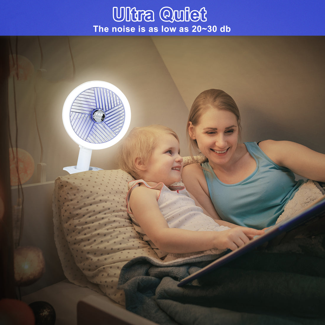 Name: Clip on Fan with Led Lamp, Rechargeable Desk Fan, 4 Speed 360Rotating Detachable Clamp...