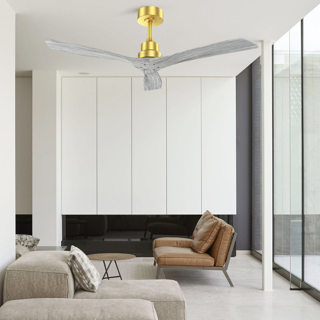 52 Inch Indoor Without Light 3 Solid Wood Blades Remote Control Reversible Dc Motor Gold Metal & Wood