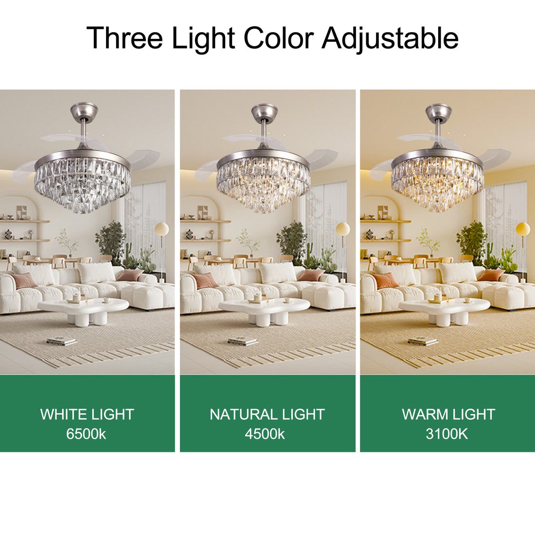 Name: 42 Inches Crystal Ceiling Fan Silver Crystal Ceiling Fan Chandelier with Remote 6 Speeds...
