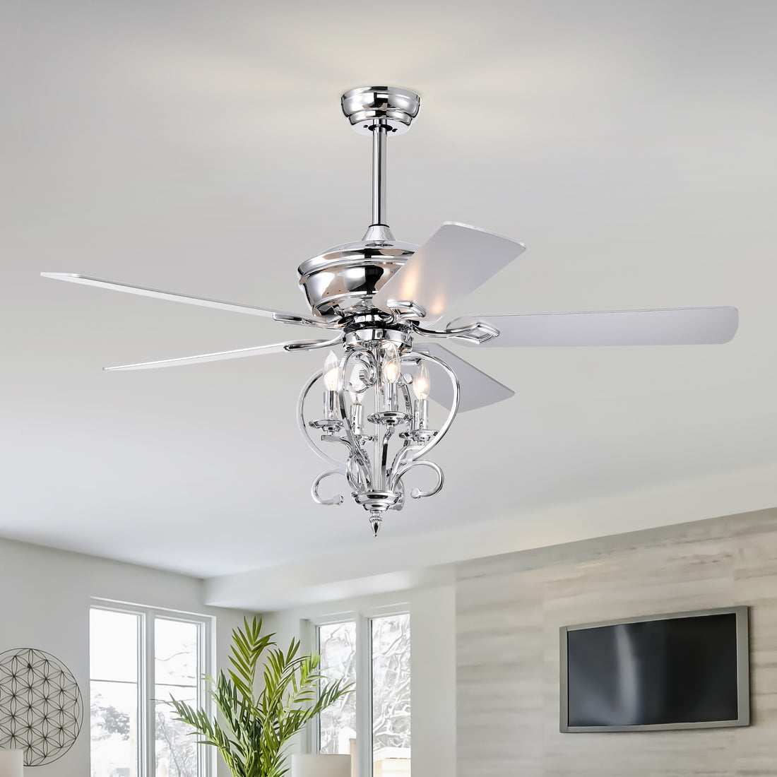 52 Inch Crystal Ceiling Fanmodern Electrical Fan With 5 Wood Reversible Blades, 4 Bulbs Not Included,Noiseless Reversible Ac Motor For Bedroom Living Room Study Patio Home Decoration Chrome Chrome Contemporary,Modern Crystal Metal