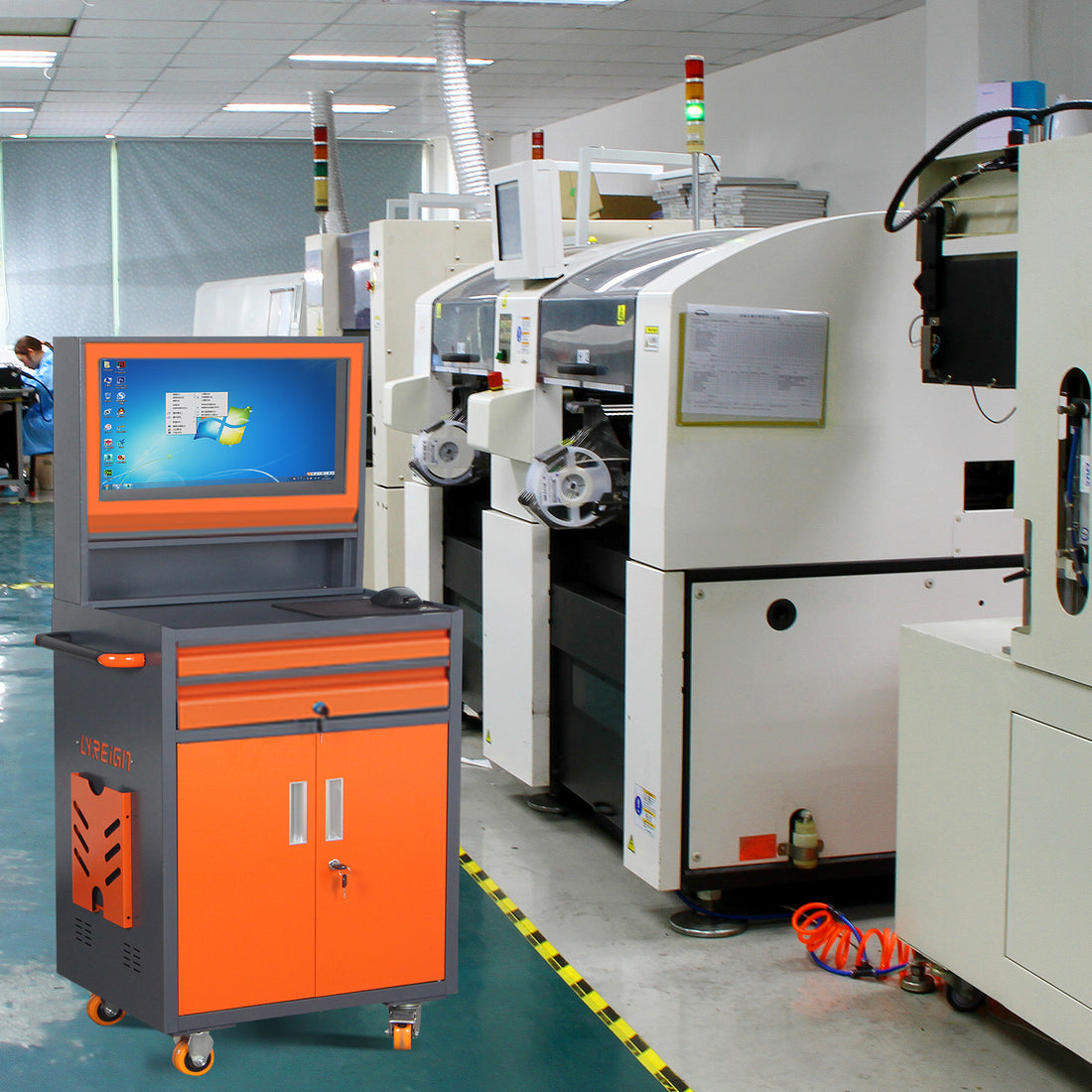 Industrial Pc Cabinet Metal Computer Cabinet Industrial Mobile Security Lcd Computer Cabinet Enclosure, Gray Orange, Suitable For Up To 27 Inch Monitors Gray Abs Steel Q235