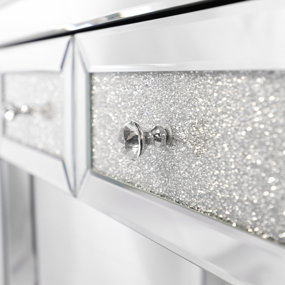 Mirrored Desk Vanity Makeup Table With Crystal Diamond,Mirror,Mdf Dressing Table With 2 Drawer Vanity Desk For Women Girls Home Office Silver Glass