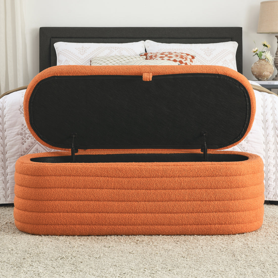 Video Welike Length 45.5 Inchesstorage Ottoman Bench Upholstered Fabric Storage Bench End Of Bed Stool With Safety Hinge For Bedroom, Living Room, Entryway, Orange Teddy. Orange Foam Fabric