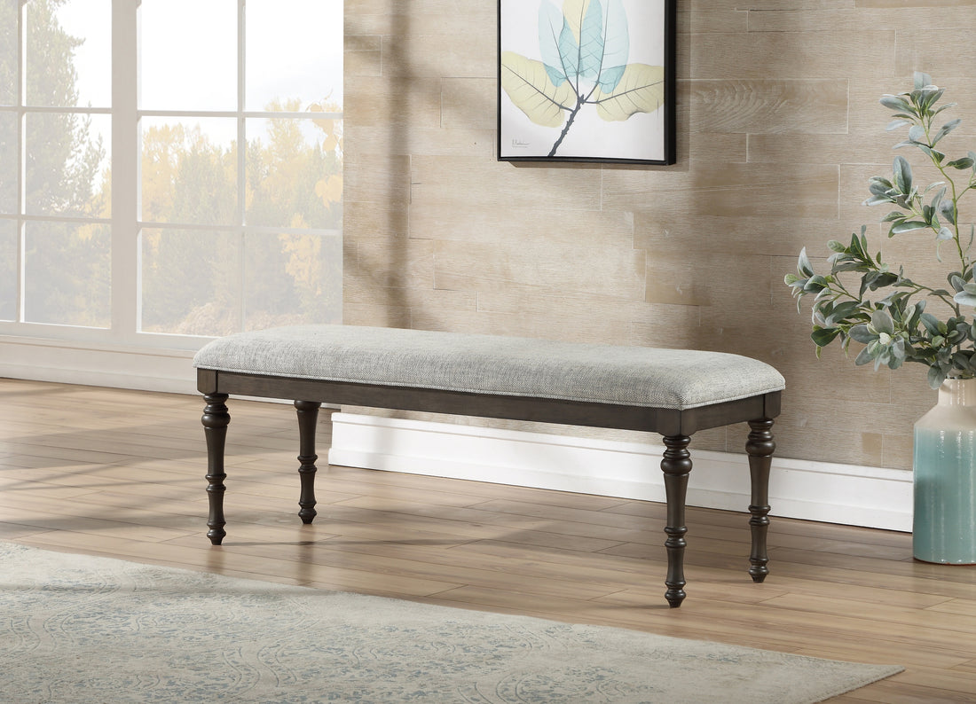 Name: Cottage Style 1pc Upholstered Seat Chalk Gray Finish Bench Dining Room Bedroom Wooden Furniture...