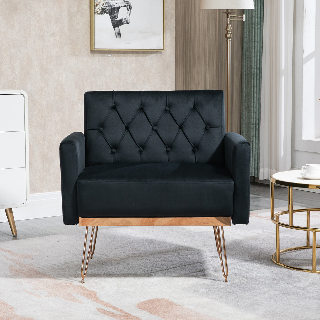 Coolmore Velvet Armchair Single Sofa Modern Tufted Upholstered Side Reading Chairs With Arm And Gold Metal Leg For Living Room Bedroom Black Black Foam Velvet