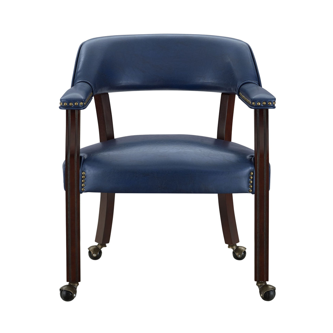 Tournament Arm Chair With Casters Medium Cherry & Blue Blue Faux Leather