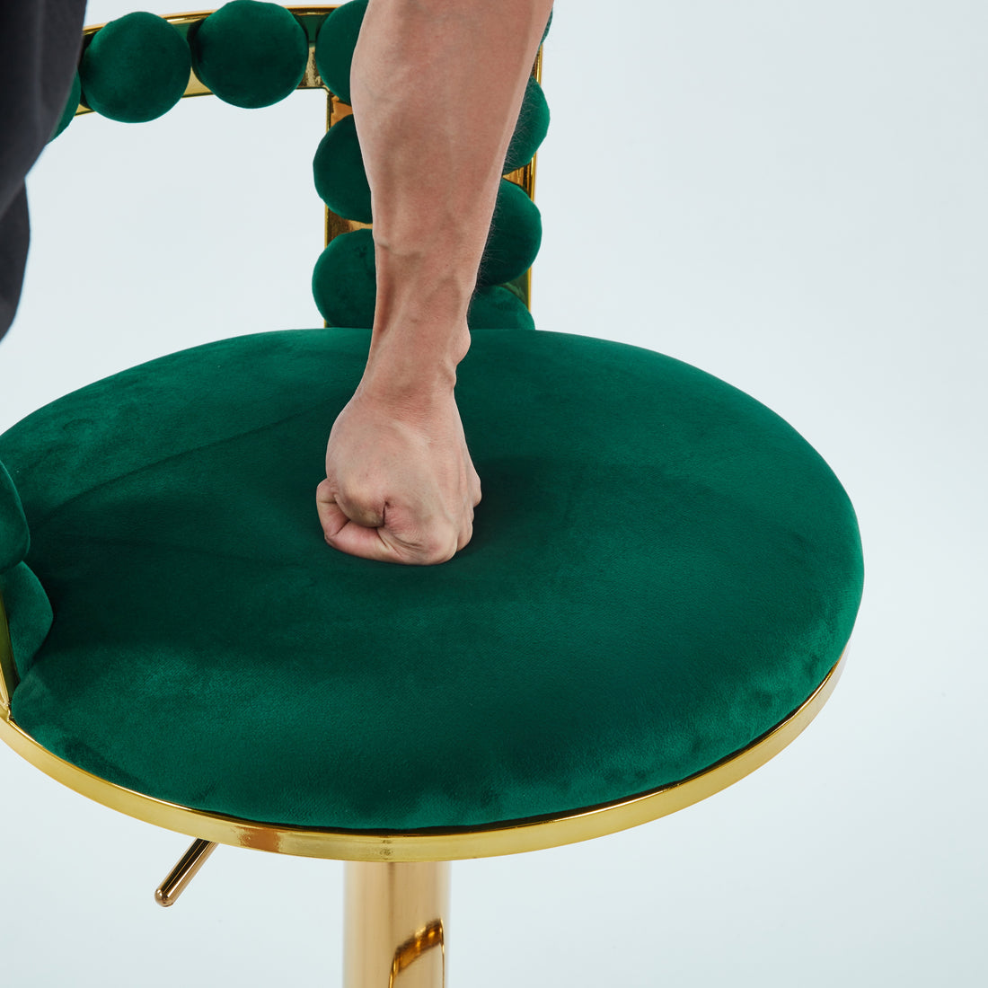 Modern Bar Chair Set Of 2 With Golden Color Iron Tube Legs, Soft Cushions And Comfortable Backrest, Suitable For Dining Room, Living Room, Cafe,Hairball Back,Bar Stool Green Fabric Metal