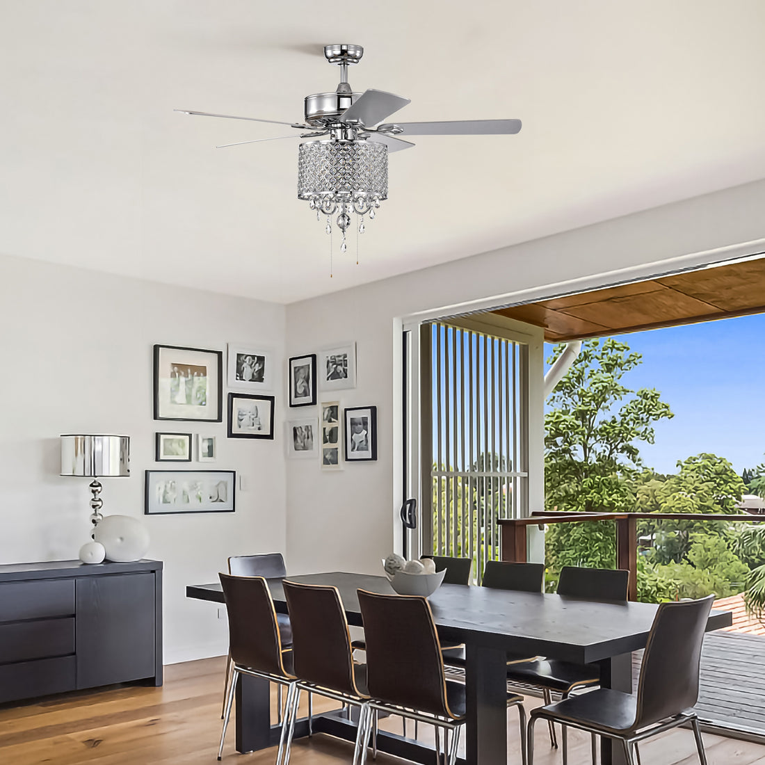 52'' Classical Crystal Ceiling Fan Lamp 3 Speed Hand Pull Chain High, Mid, Low , 5 Reversible Blades For Living Room, Dining Room, Bedroom, Family Room, Chrome ,3Pcs*E12 No Include Bulb Chrome American Traditional,Antique,Classic,Contemporary Crystal
