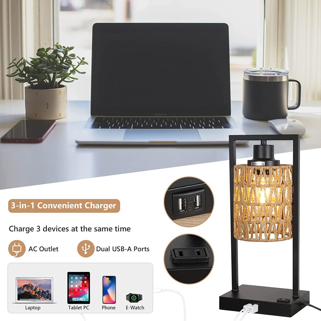 Name: Farmhouse Rattan Table Lamps Set of 2 Characteristics: [ Bohemian Table Lamp ] Our...