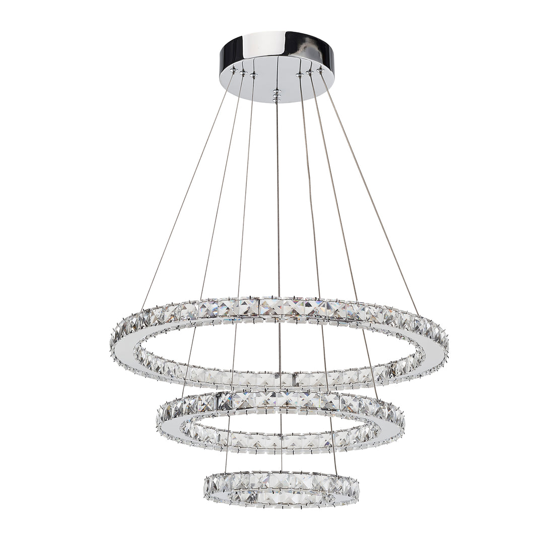 3 Layers Round Ring Chandelier, Iron Stainless Steel Crystal Chrome Color 4000K Natural White Lighting Fixtures, 60W Led Pendant Light For Living Room Dining Room Chrome Ceiling Lights 3100K 4200K