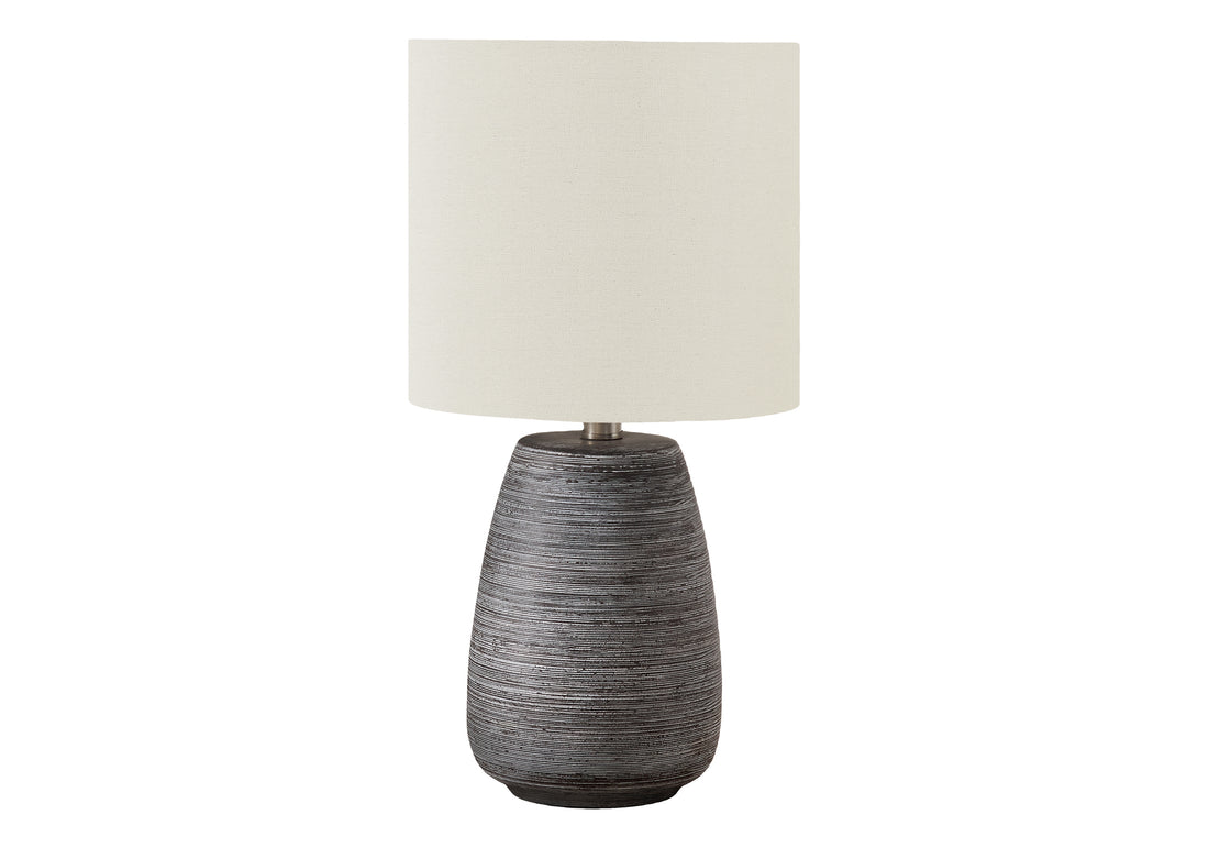 Lighting, 19"H, Table Lamp, Grey Ceramic, Ivory Cream Shade, Contemporary Grey Ceramic