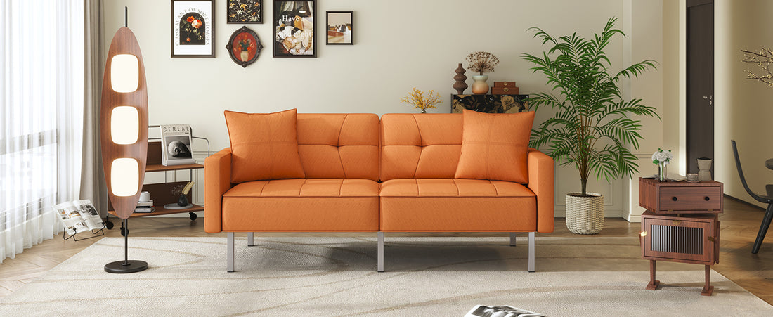 Orisfur. Linen Upholstered Modern Convertible Folding Futon Sofa Bed For Compact Living Space, Apartment, Dorm Orange Foam Linen