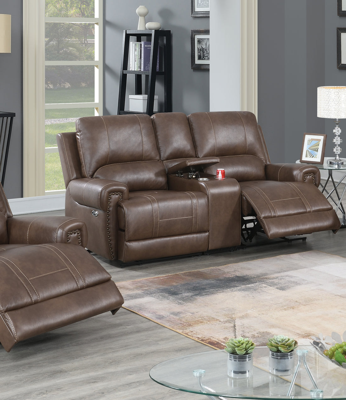 Name: Modern Luxury Loveseat Dual Glider Reclining with Center Console 1pc Formal Living Room Furniture...