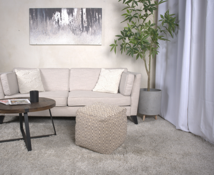 Name: Amuleto Hand Crafted Cotton Pouf, Beige and Yellow Characteristics: Our Hand - loomed poufs...