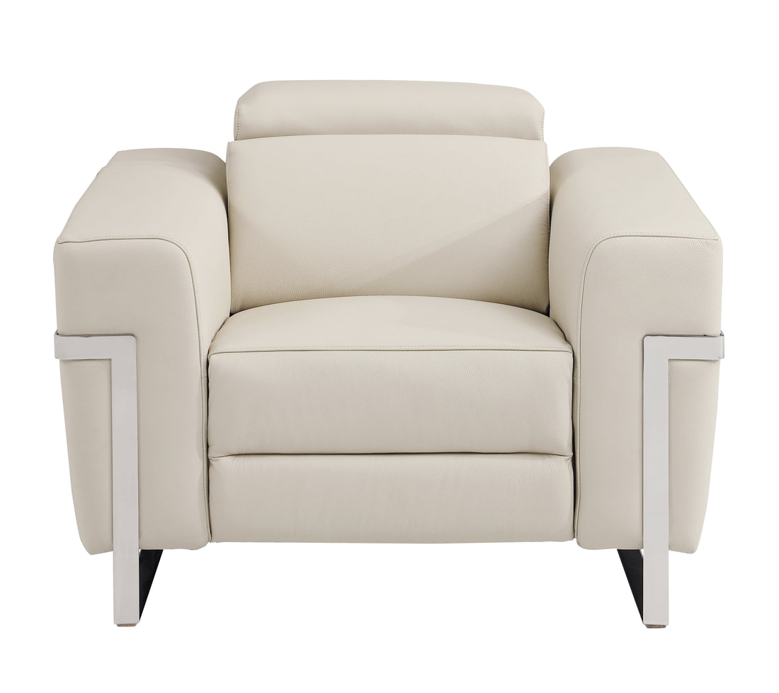 Top Grain Italian Leather Chair With Power Recliner Beige Foam Leather