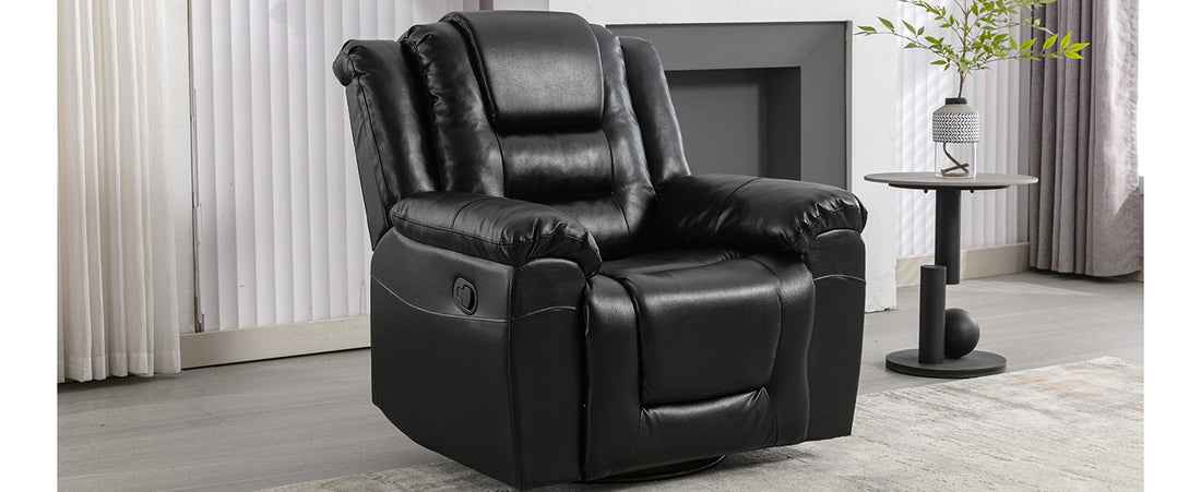 360 Swivel And Rocking Home Theater Recliner Manual Recliner Chair With Wide Armrest For Living Room,Bedroom, Black Old Sku:Pp302953Aab Black Foam Pu