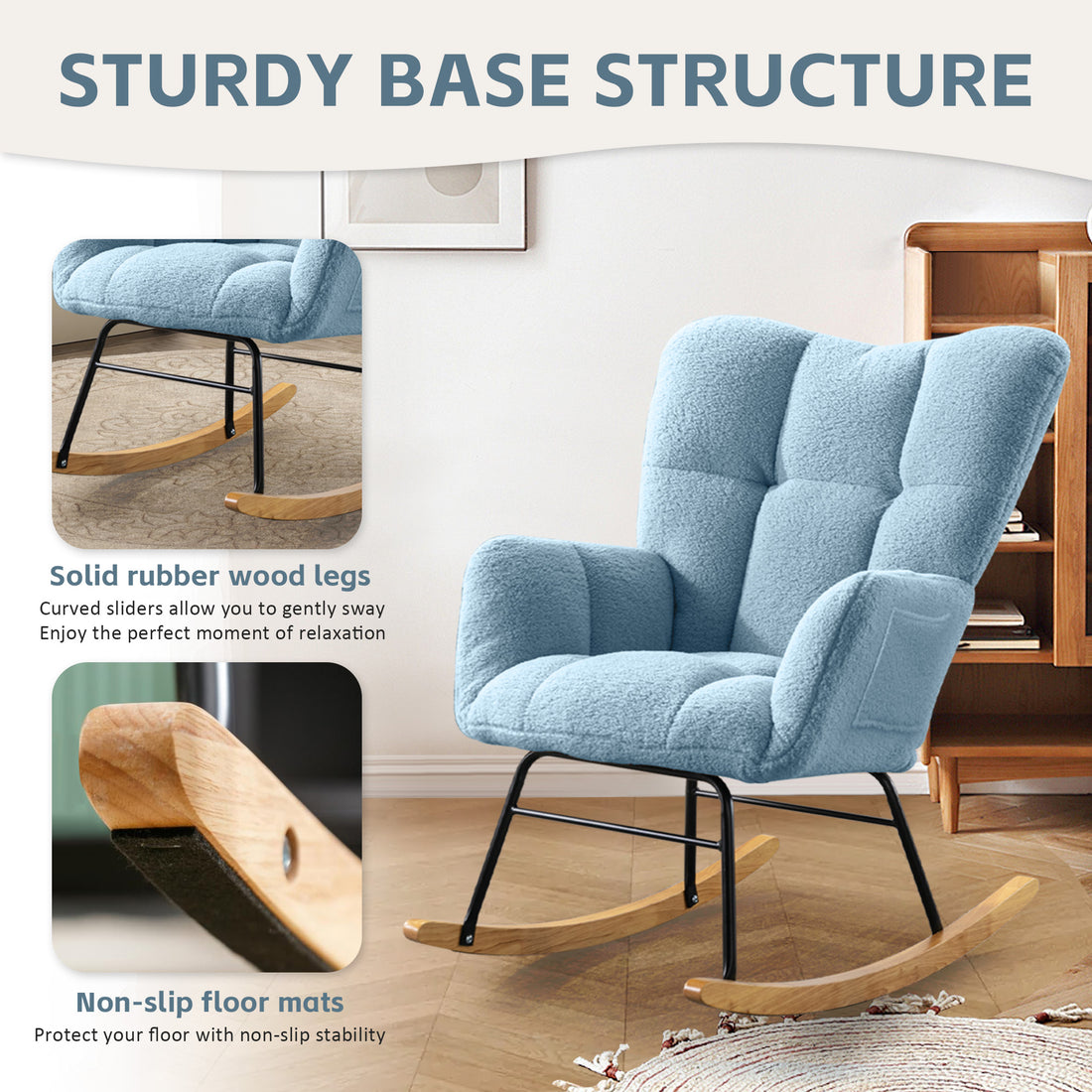 Teddy Fabric Rocking Chair, Modern Rocking Accent Chair For Nursery, Living Room, Bedroom, Sky Blue Metal Blue Bedroom Foam Modern Rocking Chairs Foam Wood Metal