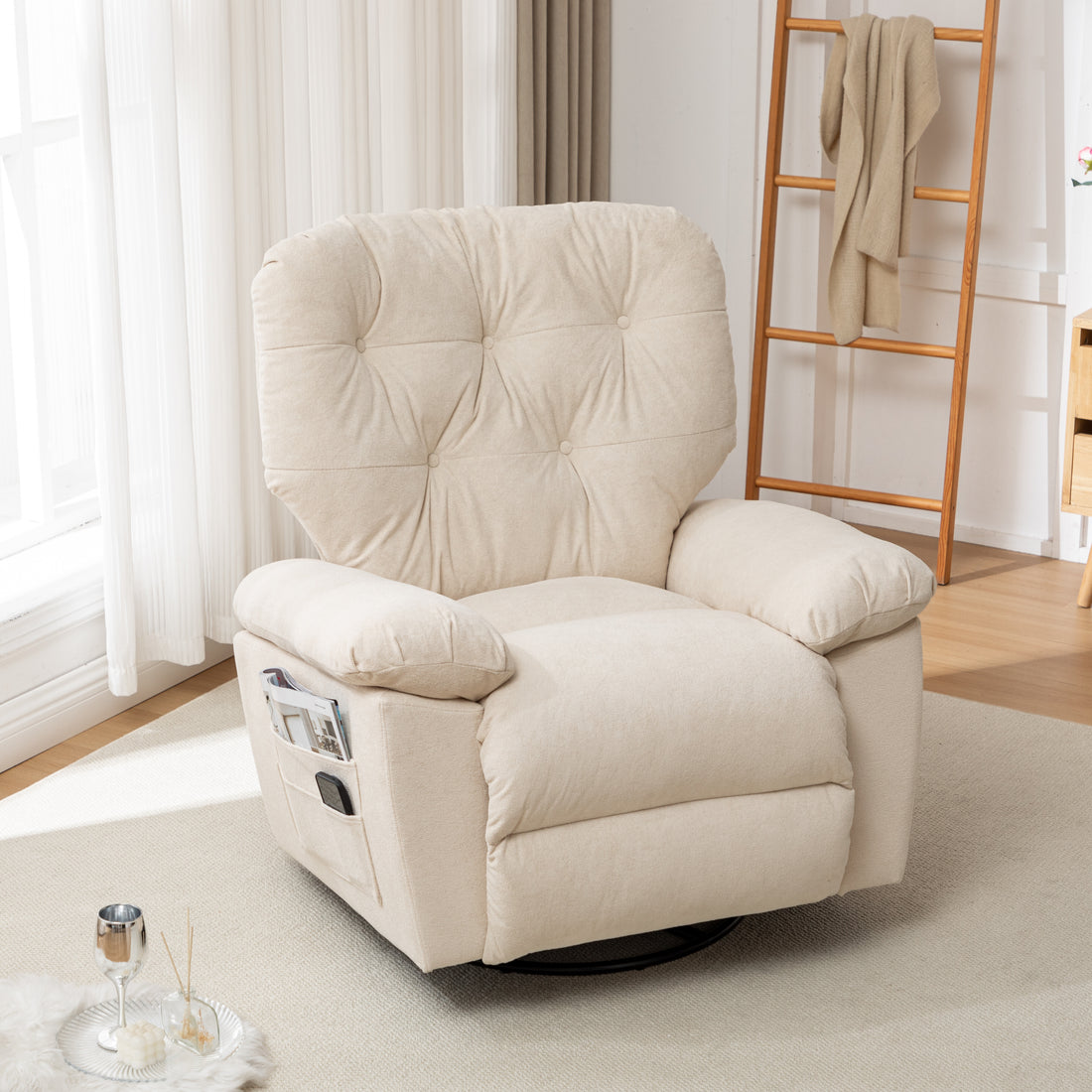 Beige Relaxing Recliner Chair,Soft Artificial Fleece, Overstuffed, Swivel, Glider, Side Pocket Beige Manual Push Button Wood Medium Soft Tufted Back Modern Push Button Oak Cotton Fleece