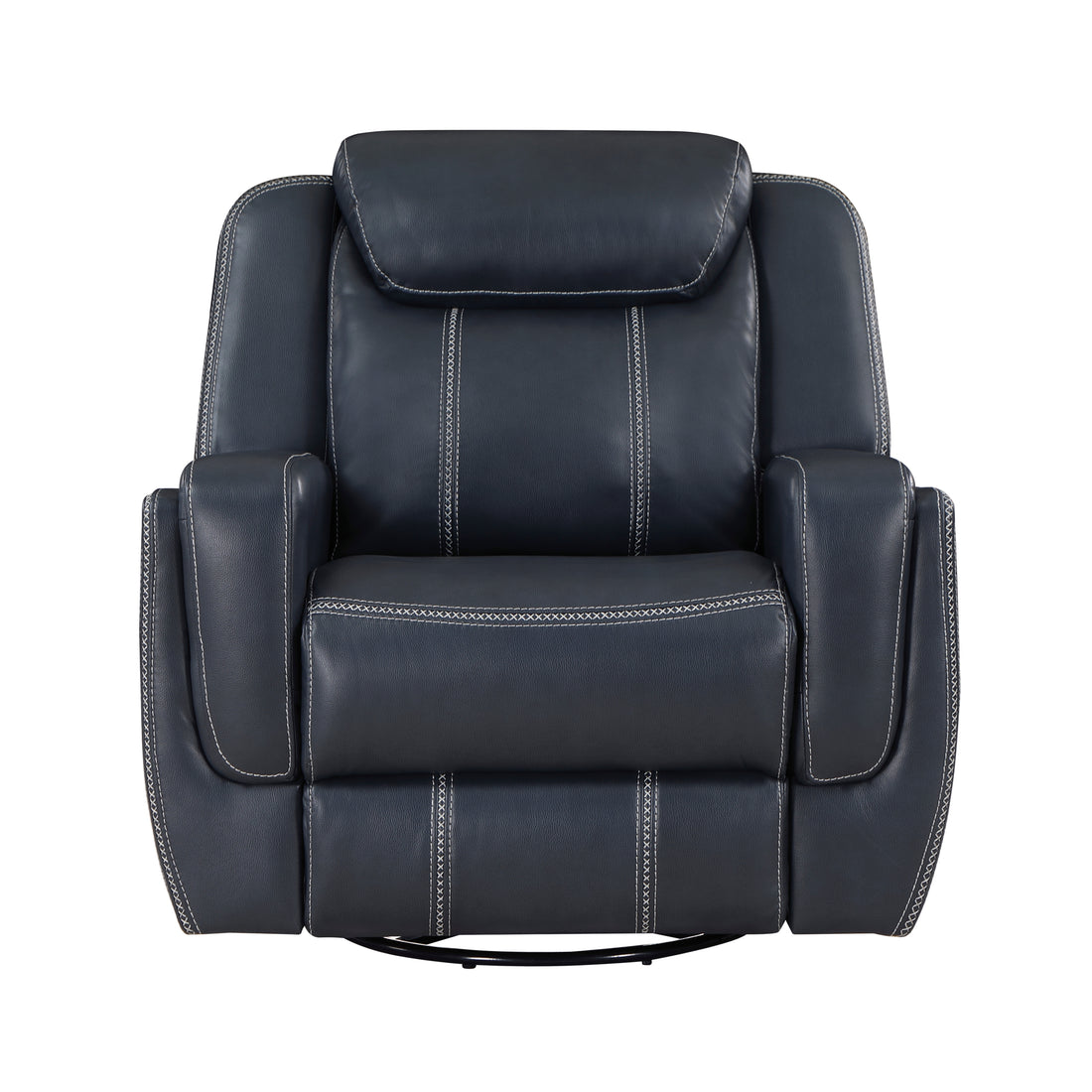 Modern Blue Swivel Glider Reclining Chair,Faux Leather Upholstery Living Room Furniture 1Pc Blue Faux Leather Wood Primary Living Space Modern Plywood,Solid Wood