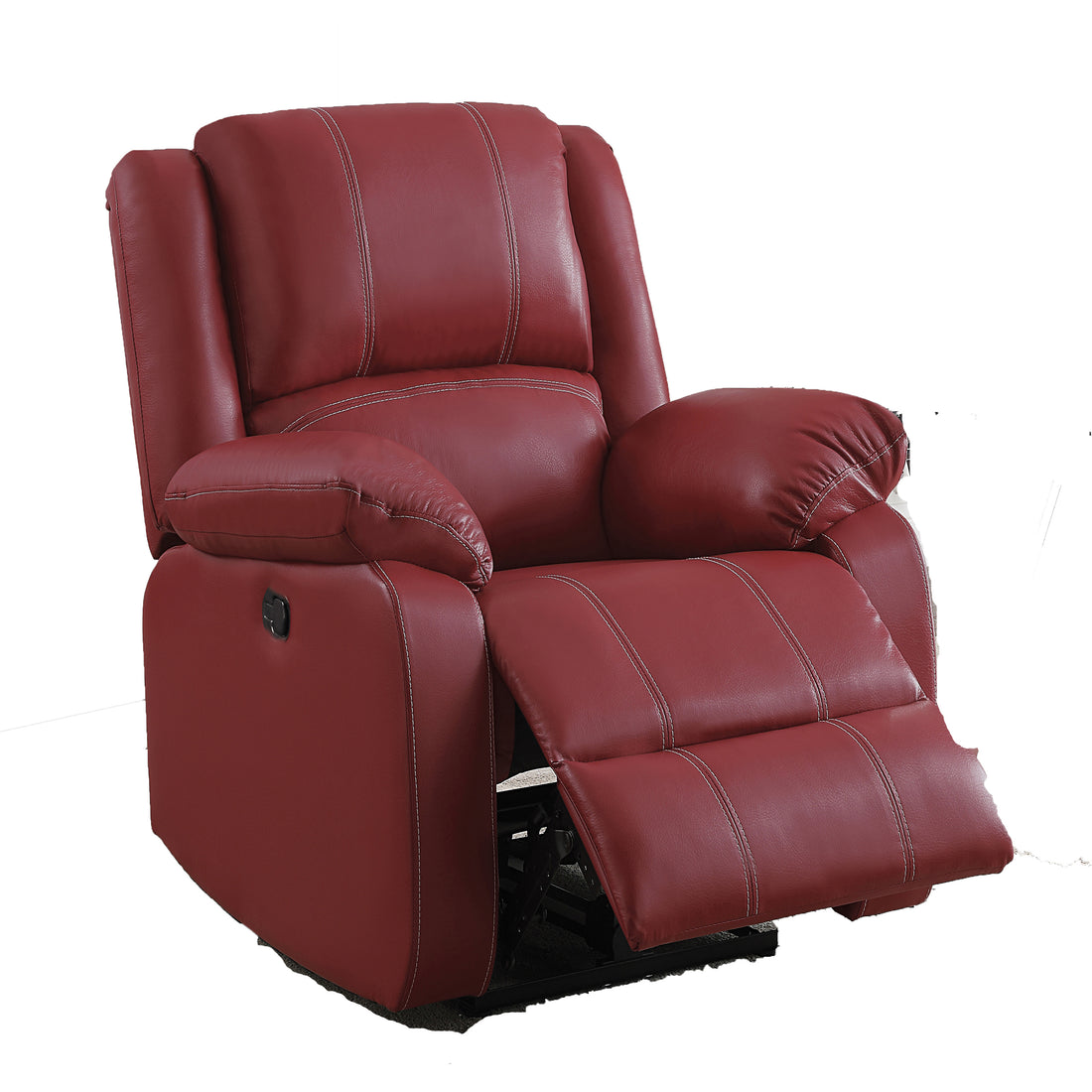 Red Pillow Top Arms Rocker Recliner Red Faux Leather Manual Handle Metal Primary Living Space Tight Back Handle Pillow Top Arms Faux Leather