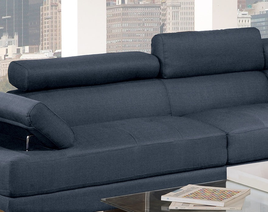 Dark Blue Color Sectional Living Room Furniture Linen Like Fabric Adjustable Headrest Right Facing Chaise & Left Facing Sofa Dark Blue Linen Primary Living Space Classic,Contemporary,Modern L Shaped Pine Pillow Top Arms Metal 5 Seat
