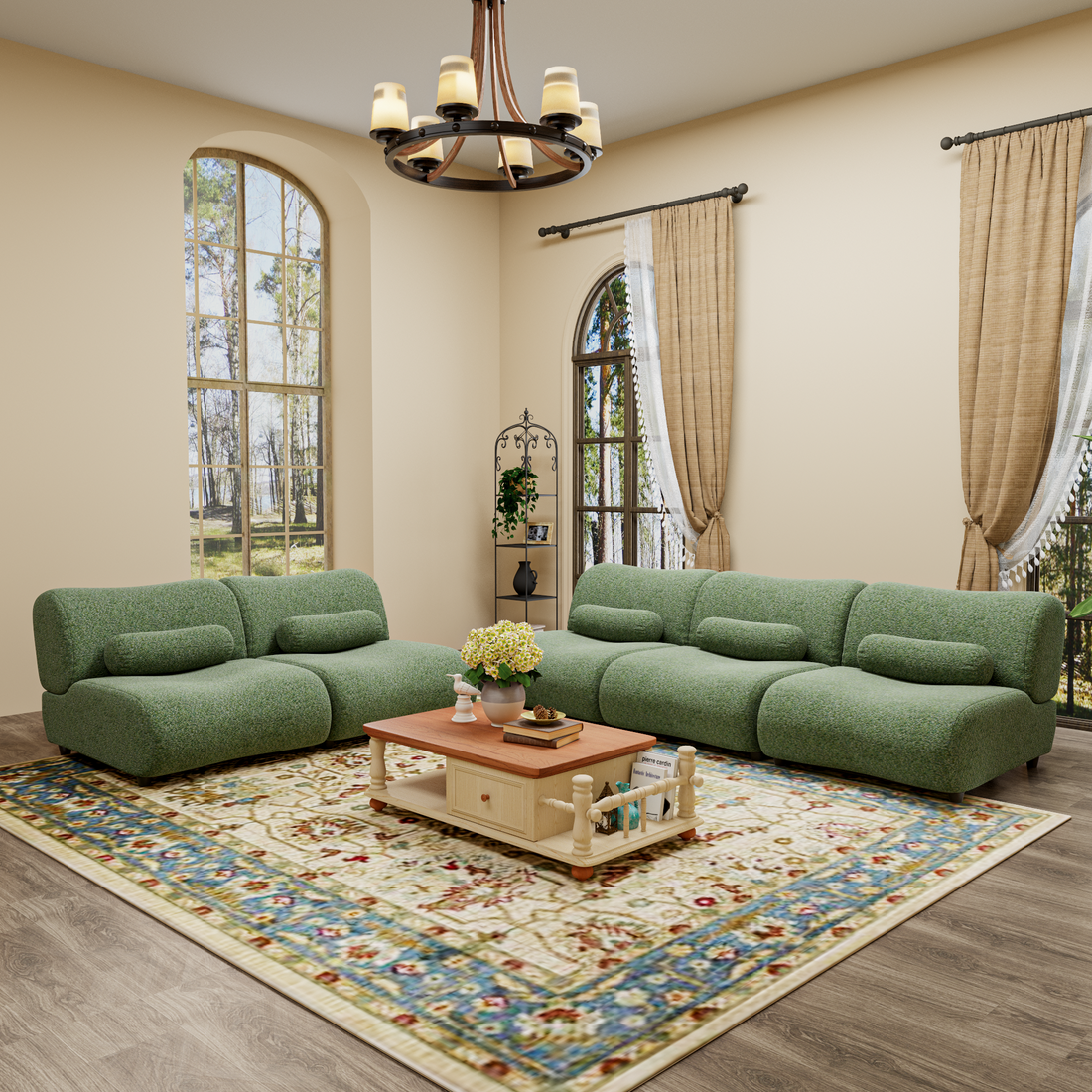Name: 5-Piece Green Modular Cloud Sofa with Comfortable Recline & Sleek Design - Chenille Upholstered...