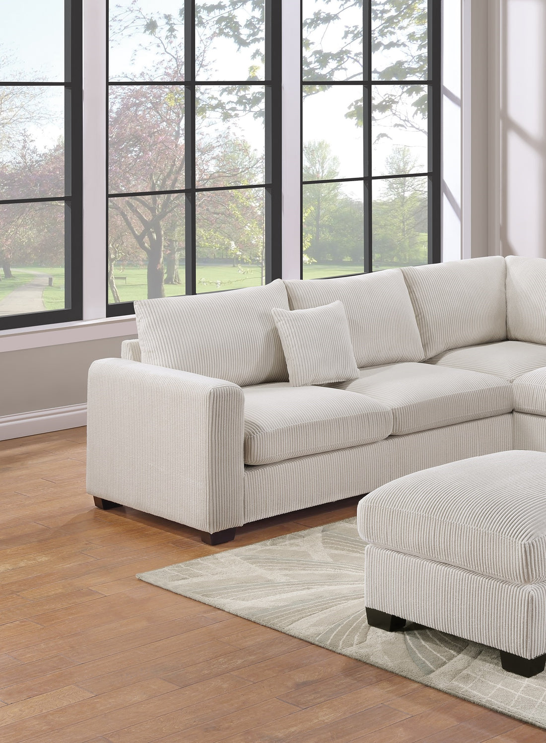 L Sectional Sofa Corduroy Ivory Color Laf And Raf Loveseats Corner Wedge Ottoman 4Pcs Sectional Set Couch Living Room Furniture Ivory Primary Living Space Contemporary,Modern,Transitional L Shaped