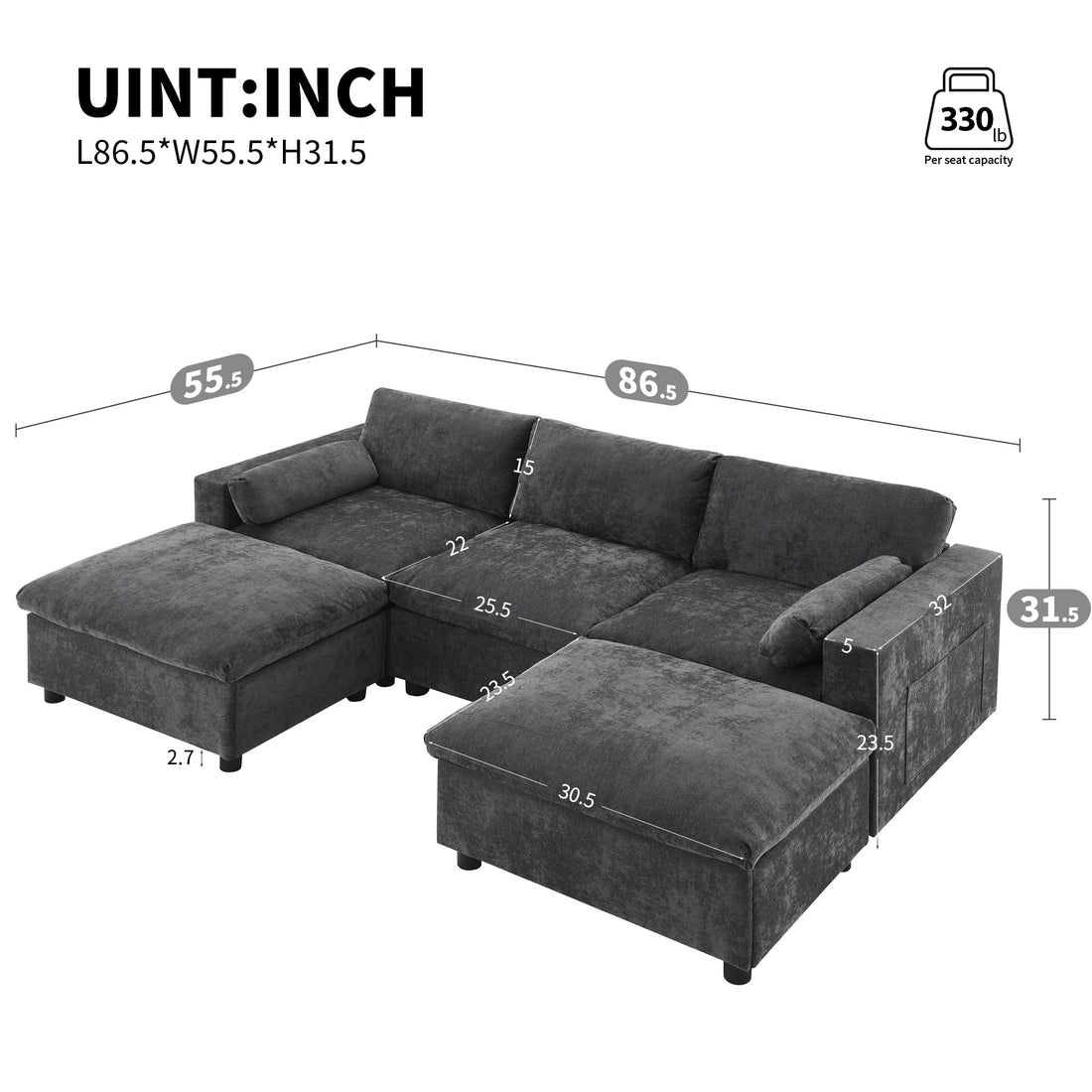 Name: Modular Sectional Sofa,4 Seater Oversized Sectional Sofa, Corduroy Fabric with 2 Ottoman Bench and...