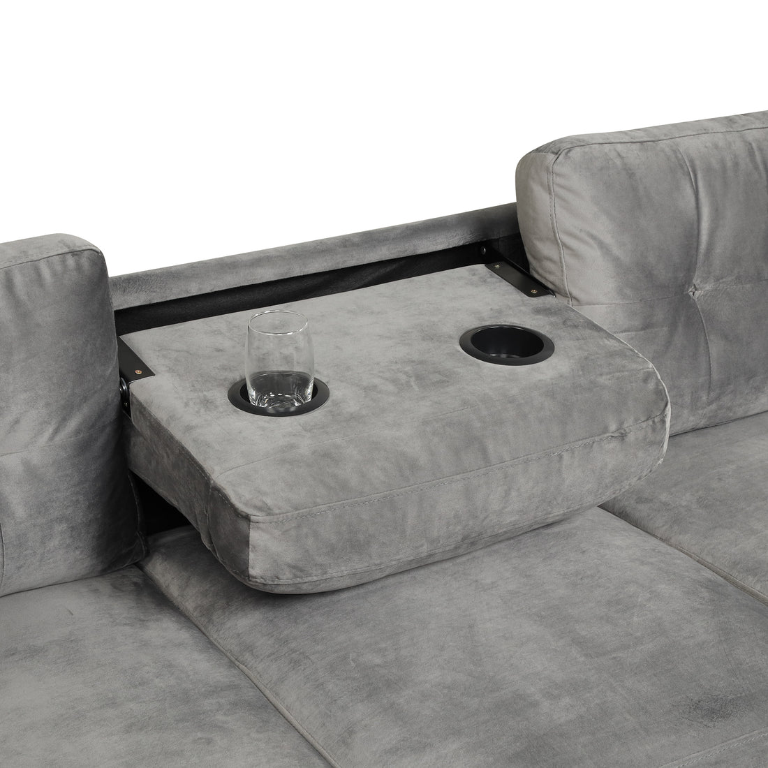 Mabel 83" Dark Gray Woven Fabric Sleeper Sectional With Cupholder, Usb Charging Port And Pocket Dark Gray Fabric