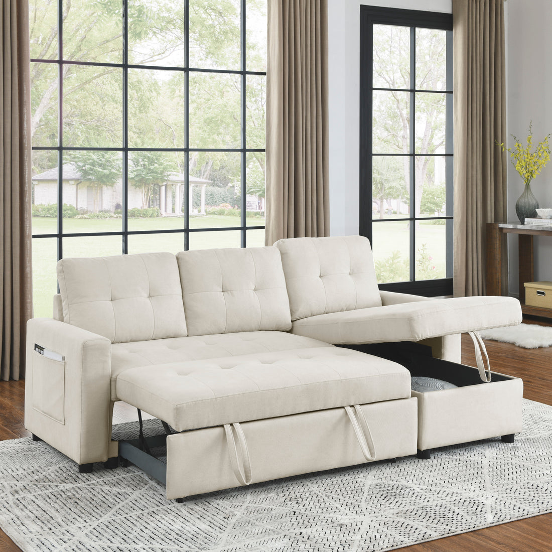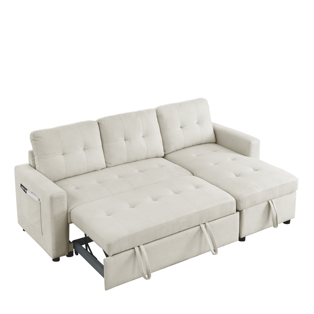 Mh 78.5" Sleeper Sofa Bed Reversible Sectional Couch With Storage Chaise And Side Storage Bag For Small Space Living Room Furniture Set Beige Primary Living Space Eucalyptus Polyester Fabric 3 Seat