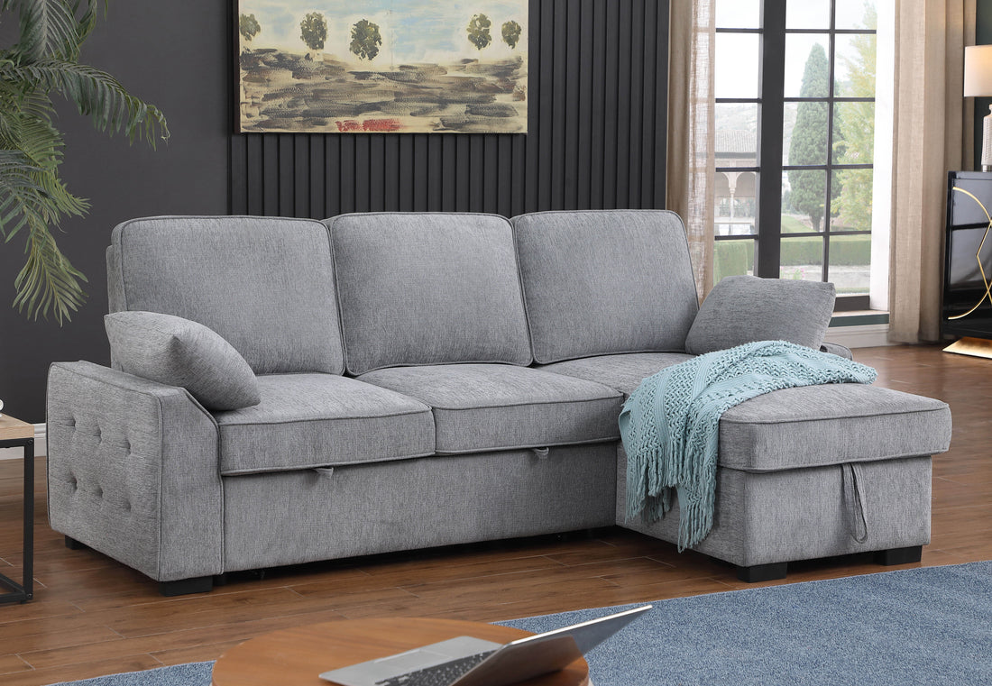 Name: Sierra 84" Dark Gray Linen Reversible Sleeper Sectional Sofa with Storage Chaise Characteristics: Reversible...