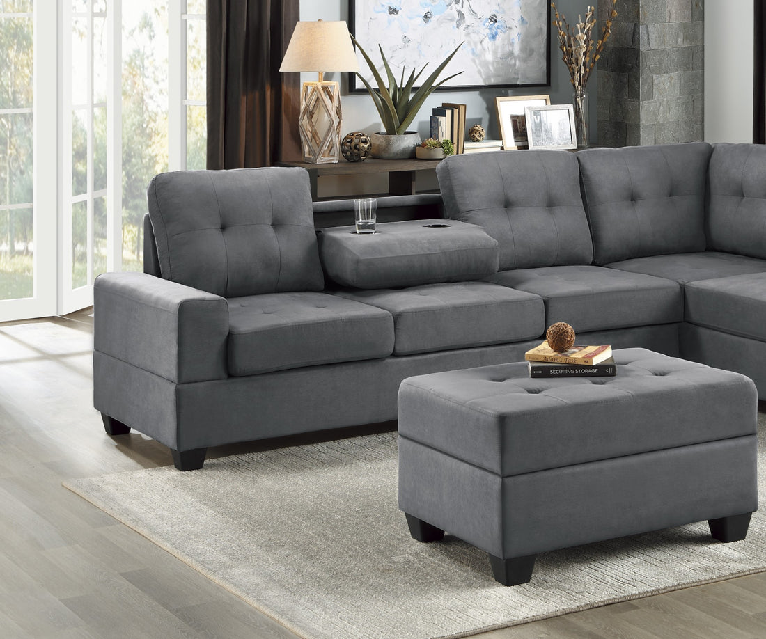 Modern Living Room 3 Piece Sectional Reversible Sofa Chaise Storage Ottoman Tufted Detail Dark Gray Microfiber Upholstered Drop Down Cup Holder Solid Wood Frame Furniture Dark Gray Microfiber Wood Primary Living Space Modern L Shaped Solid Wood 4 Seat