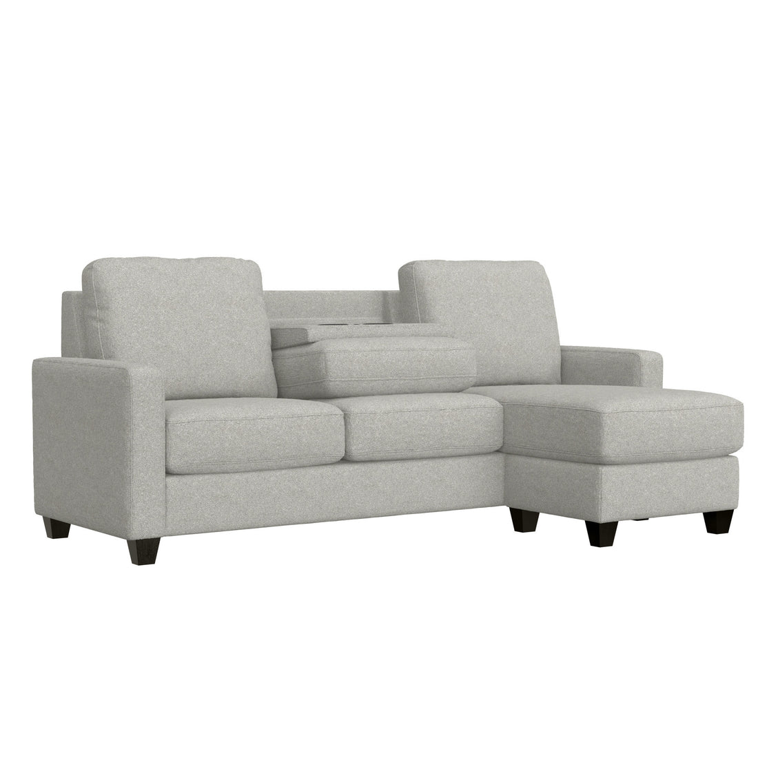 Mackenzie 91"W Light Gray Chenille Fabric Sleeper Sectional With Right Facing Storage Chaise, Drop Down Table, Cup Holders And Charging Ports Light Gray Chenille 3 Seat
