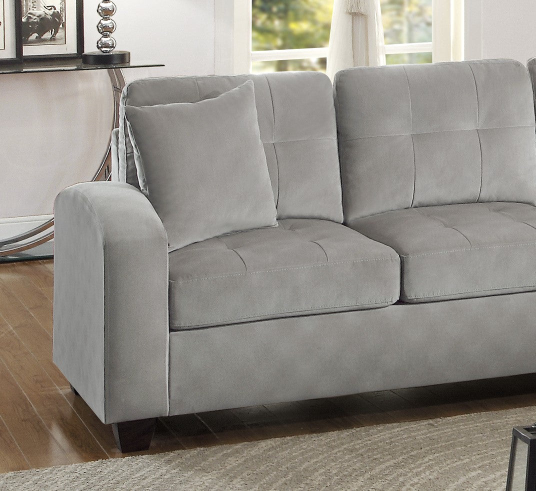 Name: 2-Piece Reversible Sectional with Chaise Tufted Detail Taupe Microfiber Upholstered Modern Living Room Furniture...
