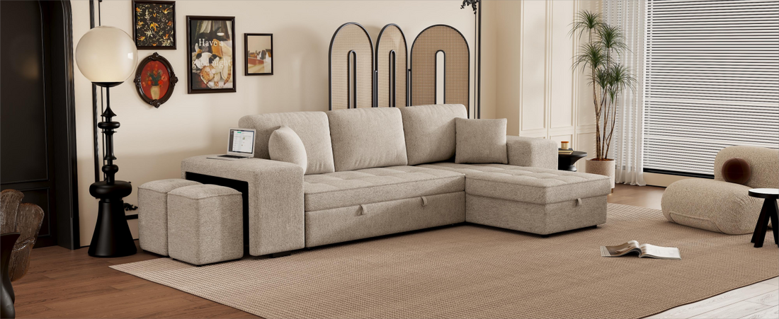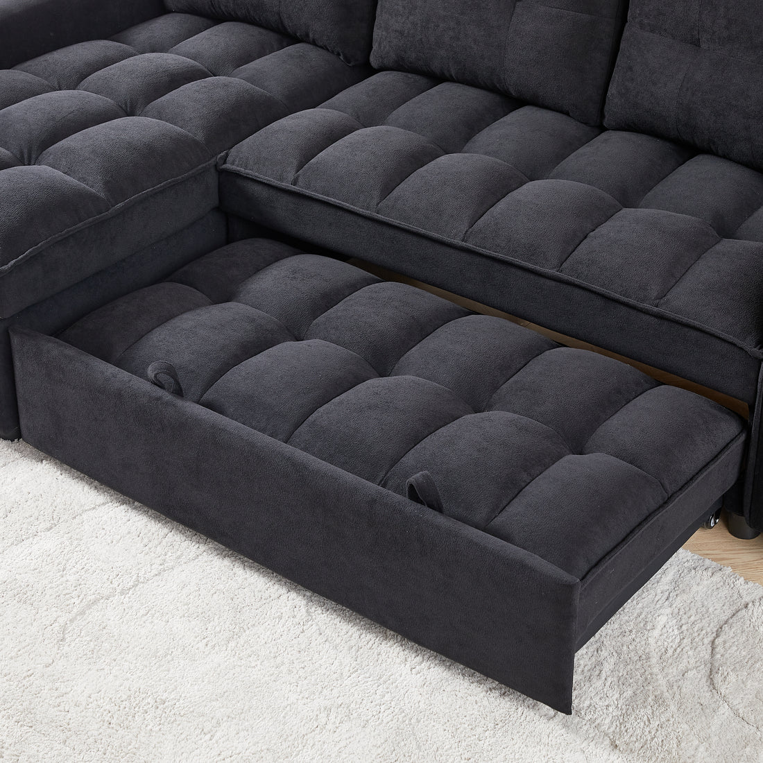 Name: 104.5" Modern L-Shape 3 Seat Reversible Sectional Couch, Pull Out Sleeper Sofa with Storage...