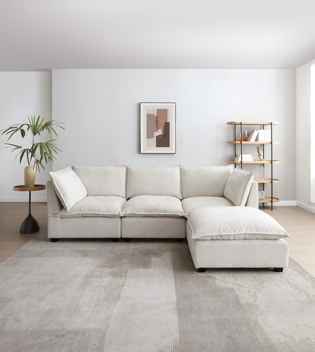 Name: Modern Sectional Sofa,L-Shape Linen Fabric Corner Couch Set with Convertible Ottoman for Living Room,...