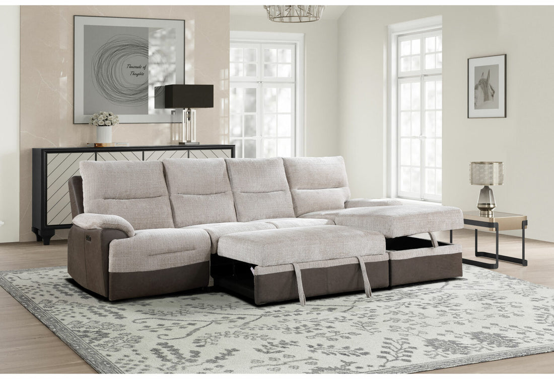 Name: Kia Beige/brown Sectional With Po And USB Characteristics: Contemporary Style Two-Tone Finish Fabric 100%...