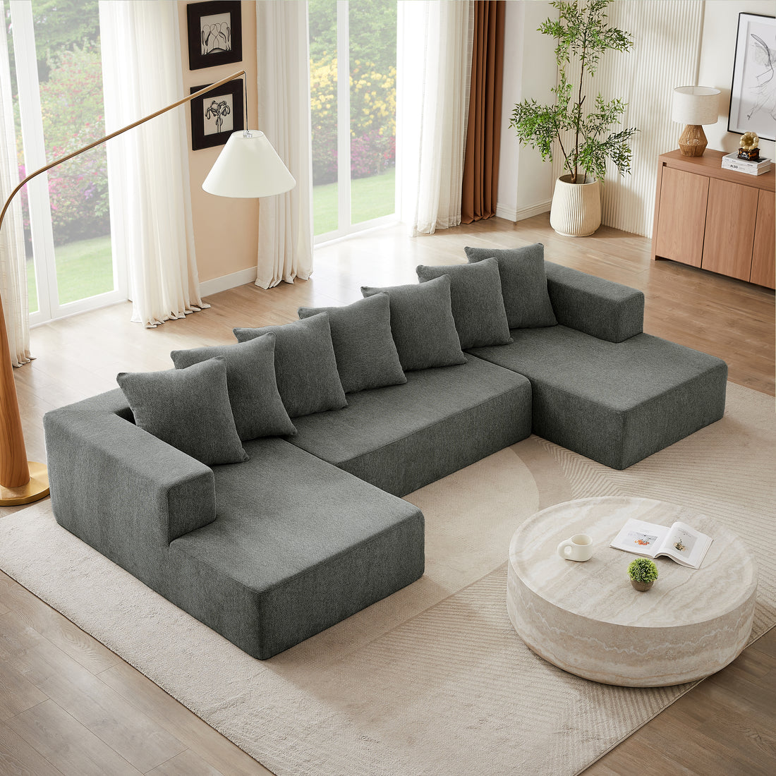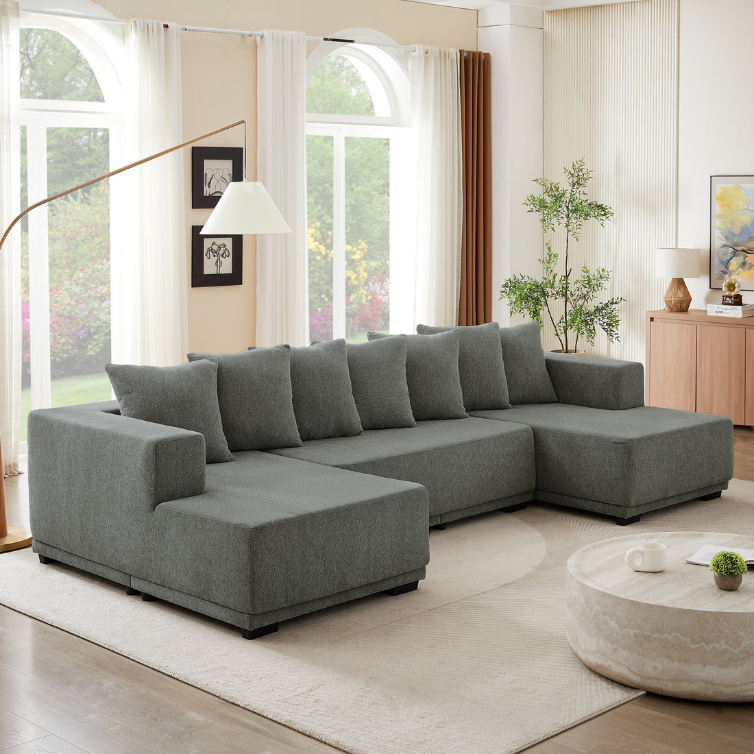 Chenille U Shaped Sectional Sofa Set,Minimalist Style Modular Sectional Sofa, Luxury Chenille Fabric Cloud Couch For Living Room Grey Chenille 6 Seat
