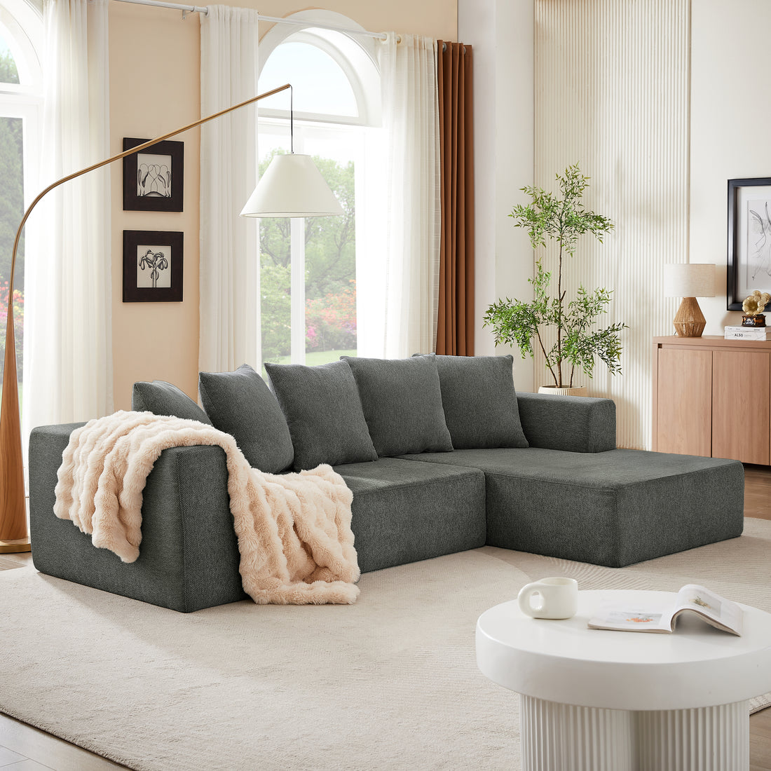 Name: Modern Modular L-Shaped Chenille Sofa with Movable Cushions, Hidden Legs, and Spring Cushions Customizable...