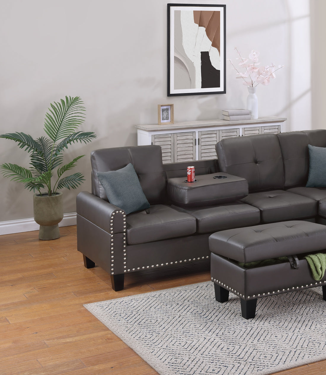 Espresso Faux Leather Living Room Furniture 3 Pcs Sectional Sofa Set Laf Sofa Raf Chaise And Storage Ottoman Cup Holder Couch Espresso Primary Living Space Contemporary,Modern,Transitional L Shaped Rubberwood Faux Leather 5 Seat