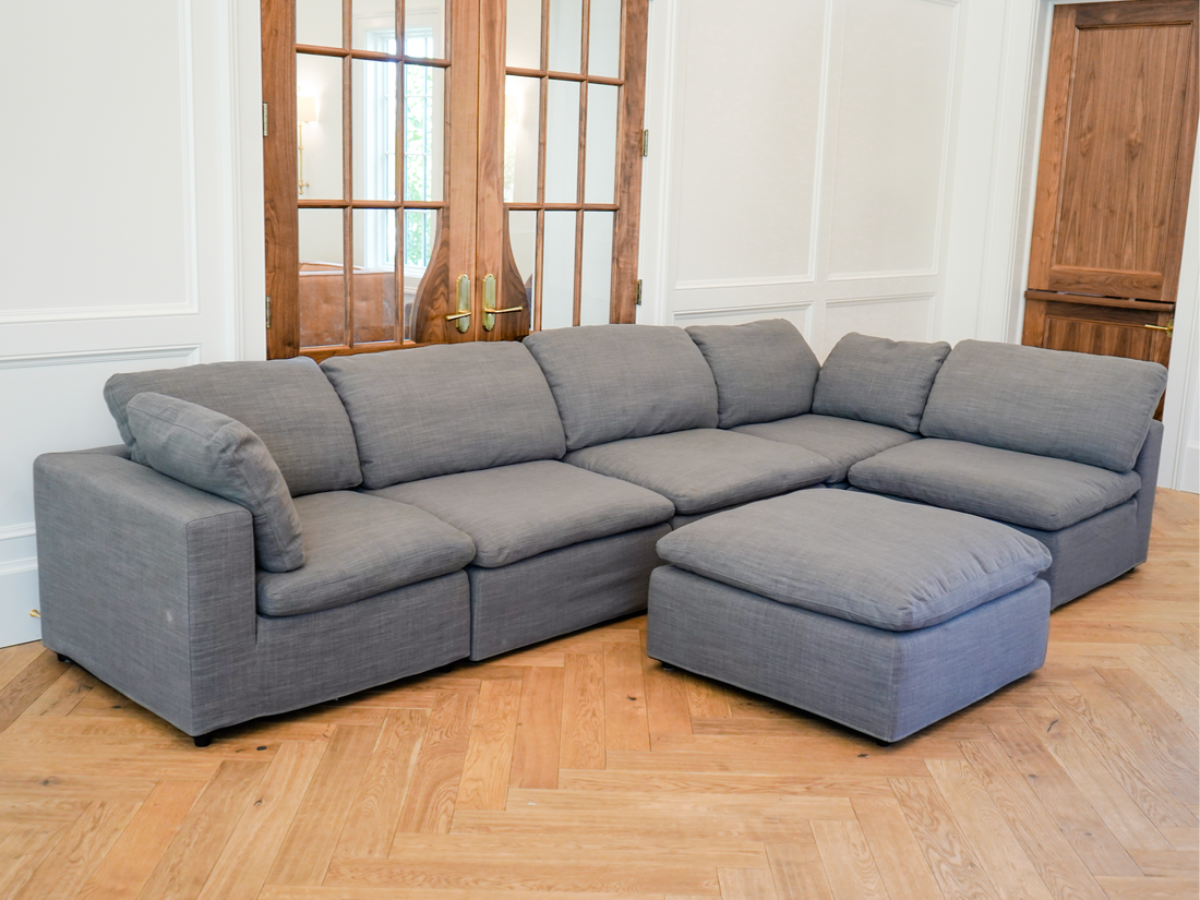 Name: Harper Luxe Grey Sectional - 6 seat Configuration Characteristics: Kiln-dried hardwood frame: Ensures durability...