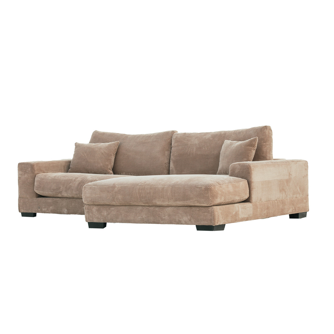 Bella Tan Corduroy Right Facing 2 Piece Sectional Tan Wood Corduroy 3 Seat