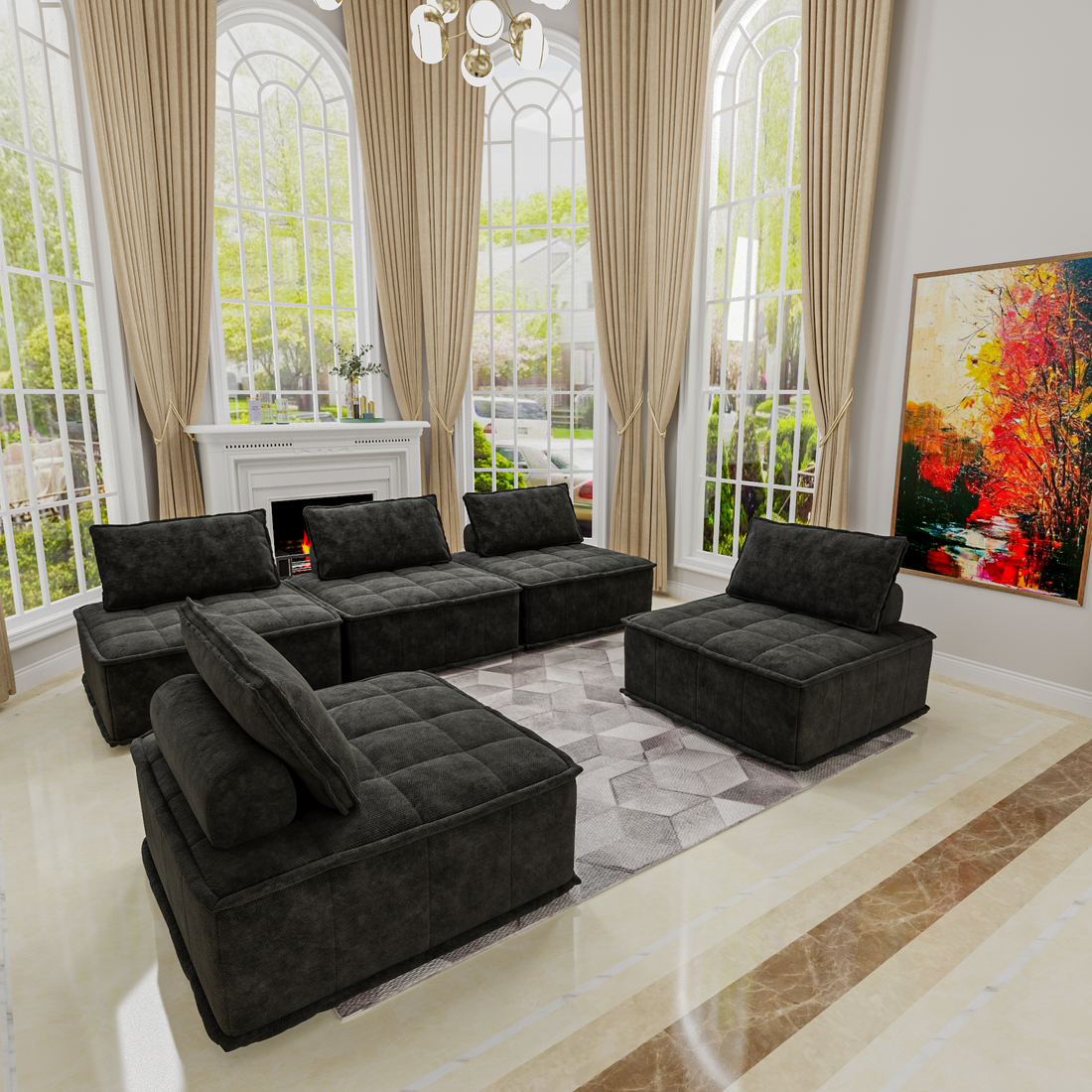 Name: Versatile 4-Module Sofa with Adjustable Backrests and Customizable Configuration chenille black sofa Characteristics: The...