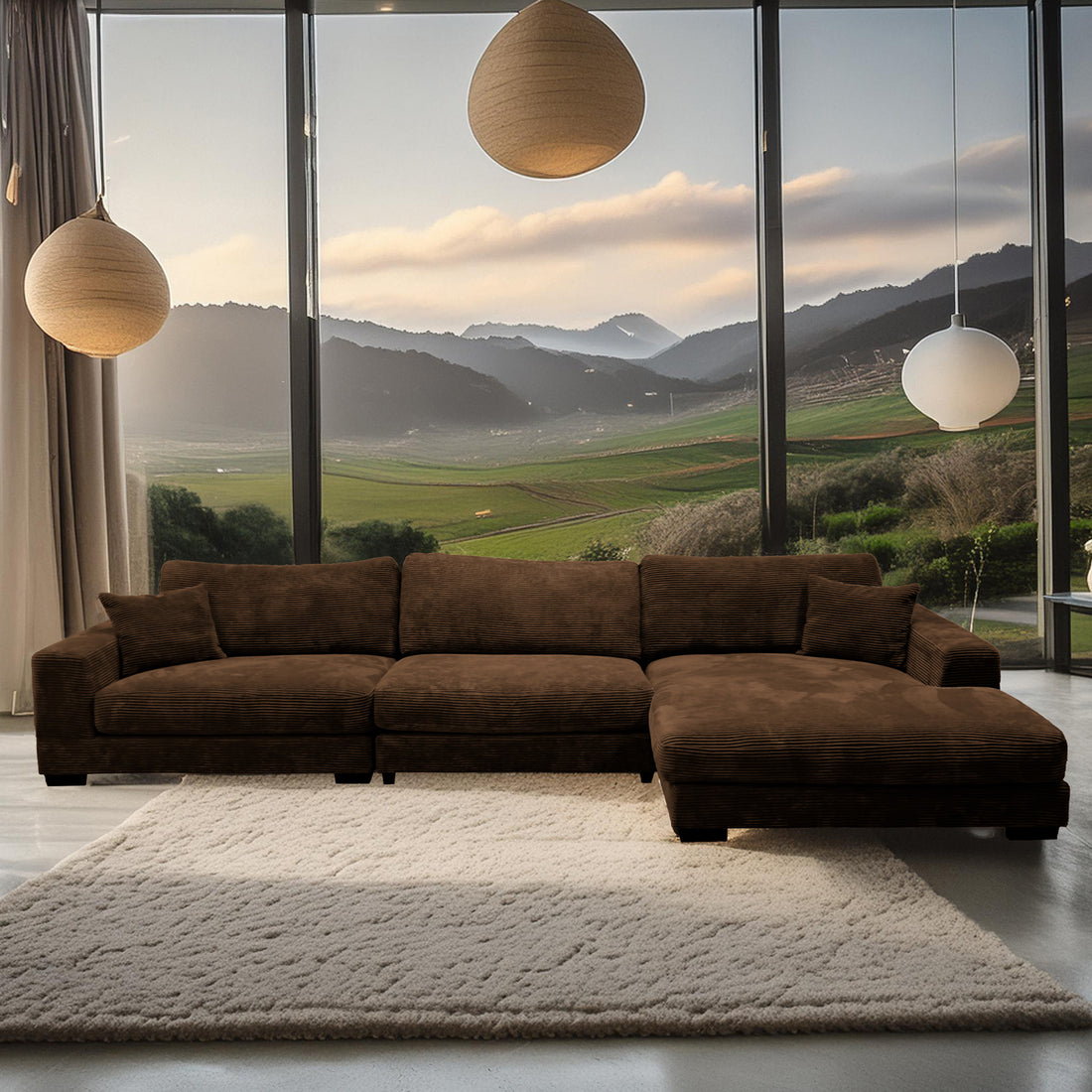 Name: Bella Brown Corduroy Right-Facing 3-piece Sectional Characteristics: Pocketed coil cushions High density foam overlay...
