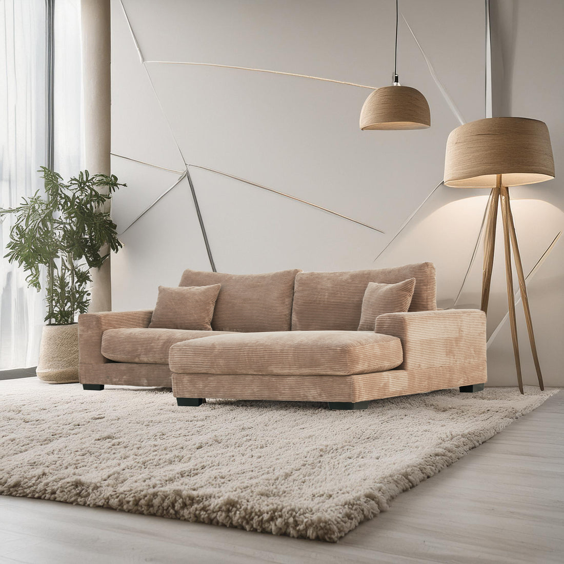 Name: Bella Tan Corduroy Right-Facing 2-piece Sectional Characteristics: Pocketed coil cushions High density foam overlay...